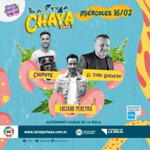 Desde la organización del Festival Nacional de la Chaya dieron a conocer cómo quedará la grilla de artistas para las dos noches especiales que se realizarán hoy y mañana, luego de que el viernes 11, el espectáculo se suspendiera producto de la lluvia y el viento. Así, las y los espectadores podrán ver, tal como estaba previsto, a los artistas nacionales El Chaqueño Palavecino y Luciano Pereyra.