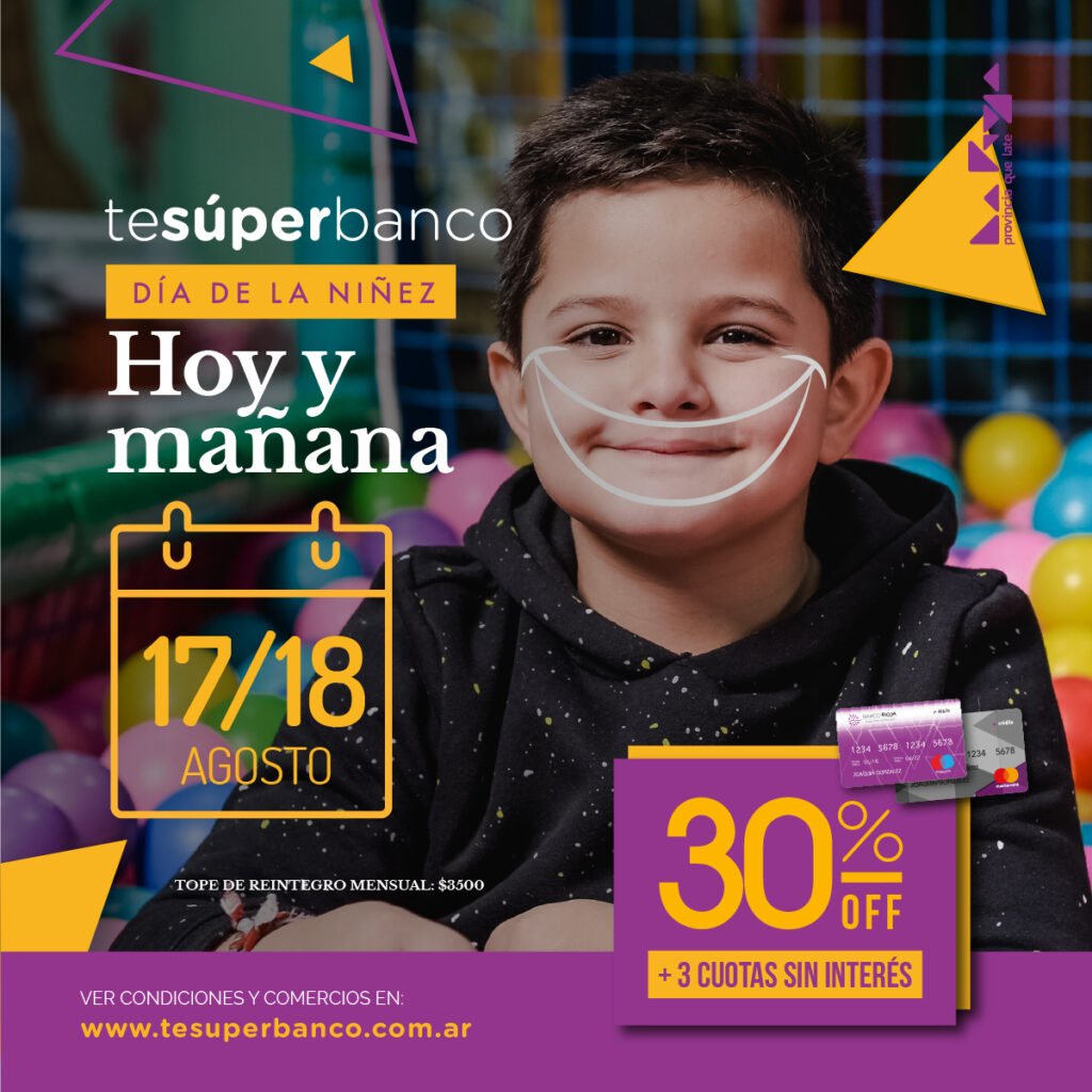 Comienza “Te súper Banco: mes de la niñez”. Banco Rioja te permite ahorrar hasta $7000