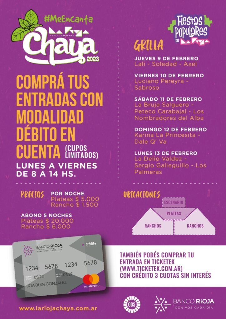 Las entradas para Chaya 2023 se podrán adquirir a partir de este lunes con la modalidad débito en cuenta, en tanto que a través de Ticketek se podrán comprar con tarjeta de crédito. En ambos casos se puede abonar en 3 cuotas sin interés. El pago de débito en cuenta está habilitado para todas las […]